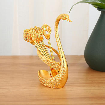 Hợp kim vàng ánh sáng sang trọng thiên nga 6 gói trái cây ngã ba dễ thương muỗng cà phê trẻ em món tráng miệng Bộ đồ ăn hiện đại phong cách sang trọng